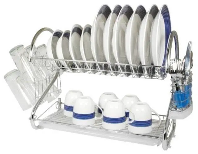 * Side Mounting Mug Stand and Cutlery Holder * Metal construction with attractive chrome plating * Non-marring silicone coated feet protectors * Includes: plastic draining tray, mug stand, and cutlery holder