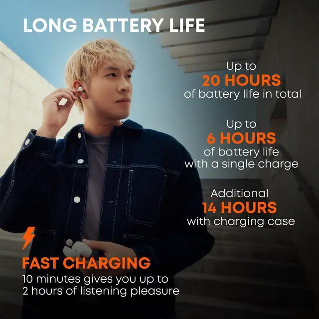 Sound experience via the clip earbuds after a single charge