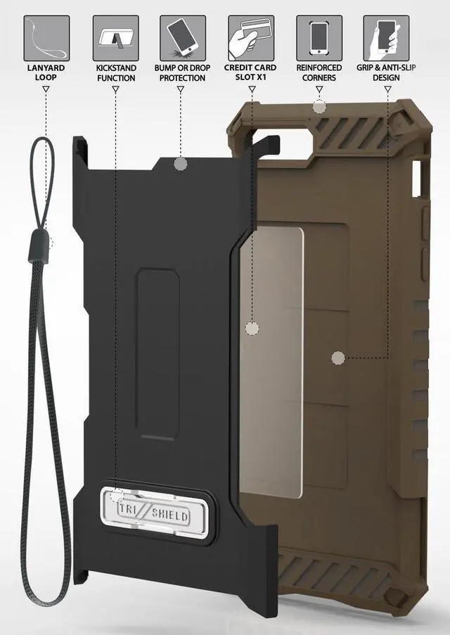 The Tri-Shield Case combines drop protection, kickstand viewing, mobile wallet, enhanced grip and one-of-a-kind design.