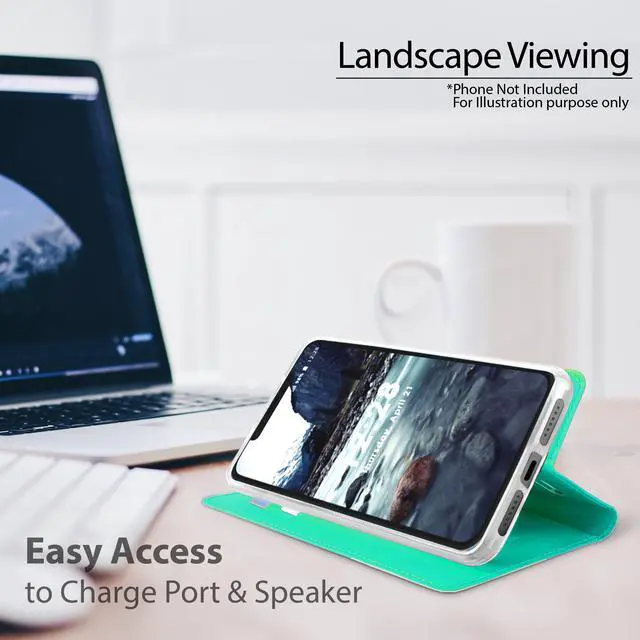 FEATURES: This case will also function as a viewing stand. You can prop the phone in the horizontal position - this is great for watching videos and movies hands-free. The case will open and close like a book - features subtle internal magnet that helps keep the case closed - no complicated snaps or buttons. You can still access camera, buttons, ports, sensors, speakers. Flip open the case to access touchscreen.
