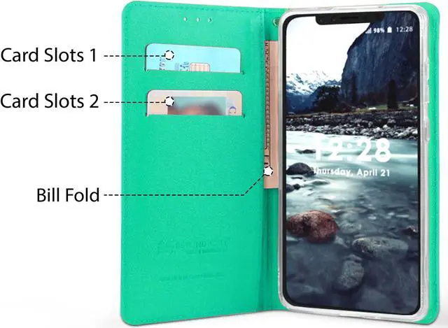 STORAGE: This case features three (3) storage compartments on the interior left side. The two credit card slots will accommodate multiple cards in each slot. Behind the left panel youll see one full-length slot. Now you can carry your phone, credit cards, business cards, etc, all in one case!