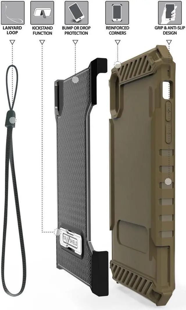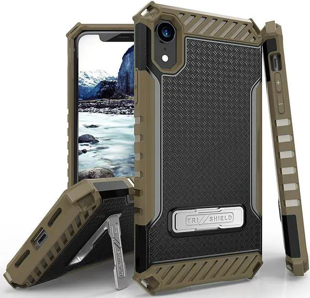 The Tri-Shield Case provides kickstand viewing, drop protection, enhanced grip and one-of-a-kind design.