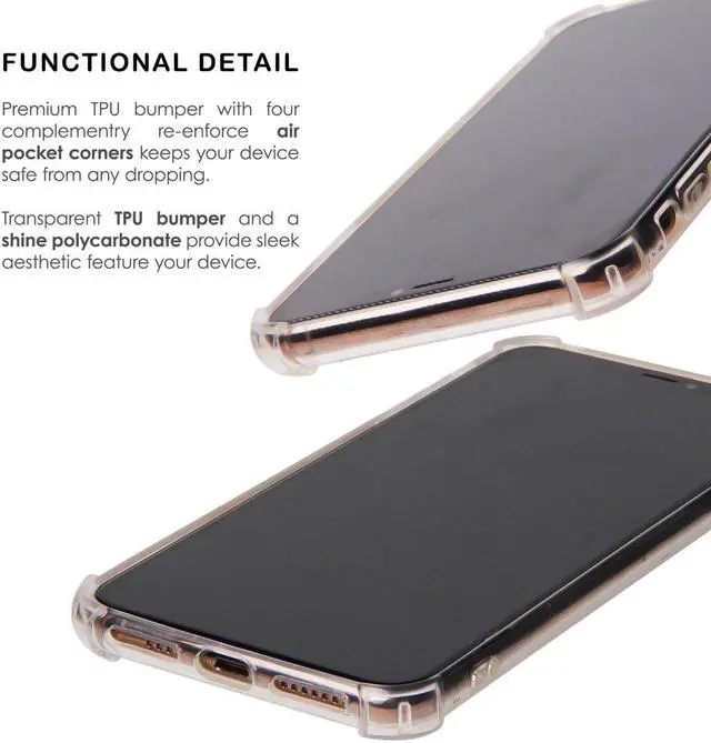 MATERIAL: This is a one-piece case that combines firm plastic with flexible shock-absorbing TPU bumper. The clear hard backside will showcase the original design and beauty of your iPhone Xs Max. The flexible sides are made of TPU material. All 4 corners feature elevated bumpers for shock absorption.