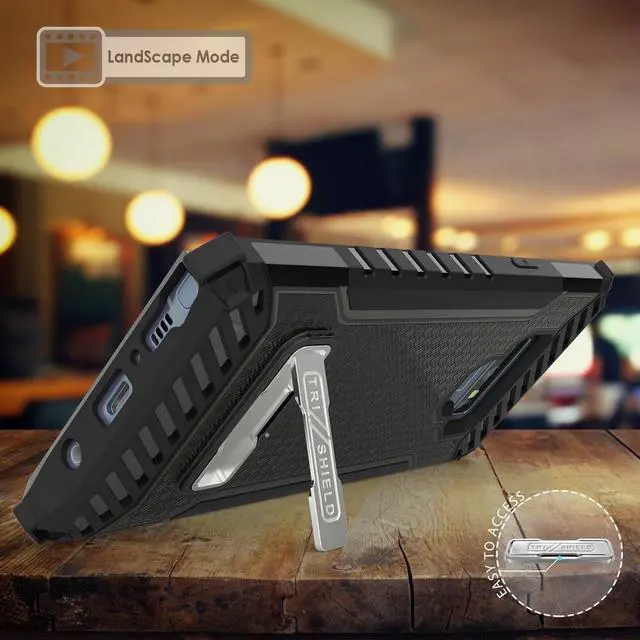 The Tri-Shield Case provides kickstand viewing, drop protection, enhanced grip and one-of-a-kind design.