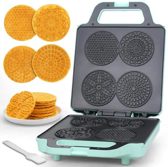 [Exquisite Patterns & Ideal Size]: Each cookie boasts a pattern design on it, crafted to perfection. This appliance bakes 4 krumkake cookies, each 3.5 inches in diameter, offering the ideal bite-sized treat for any gathering. Can also act as a cannoli shell or cone, it enhances both your breakfasts and afternoon teas, making it a must-have for Christmas baking exchanges. [Effortlessly Simple]: Simply mix the batter, bake, and indulge in mouthwatering delights. Included recipes transform you into a culinary expert in no time. [Durable & Uniform Baking Plates]: Featuring uniform baking plates, this Pizzelle iron guarantees uniform heat distribution, resulting in crispy, golden-brown cookies. [Hassle-Free Pizzelle Maker]: The nonstick surfaces facilitate breeze cleanup, eliminating any mess. Say goodbye to cleanup worries. [Gifts for loved one] : A delightful gift for baking enthusiasts. Perfect for housewarming parties or as essentials for a new home or first apartment!