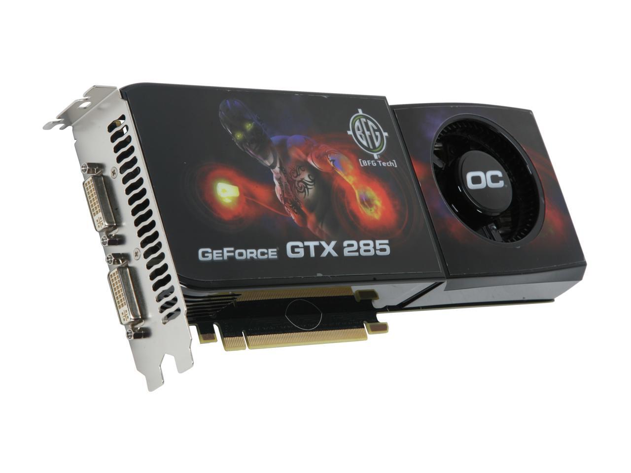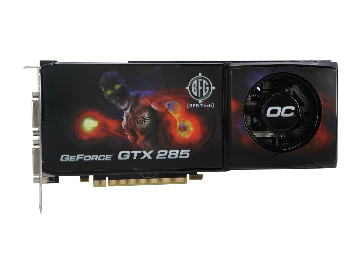 | Package Contents | BFG NVIDIA GeForce GTX 285 OC 1GB graphics card Quick install guide DVI to VGA adapter DVI to HDMI adapter S/PDIF analog audio cable (1 ft.) Dual 4-pin peripheral to single 6-pin PCI Express power adapter Driver CD, which includes - NVIDIA Forceware unified graphics driver - Full multiple language installation manual .pdf |