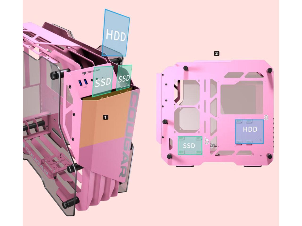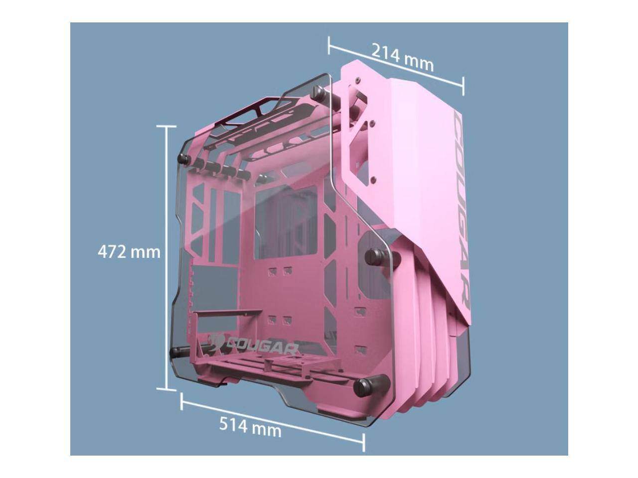 Cougar Open-Frame Computer case ATX 240mm Radiator Aluminum Alloy Glass PC Game Case - Pink