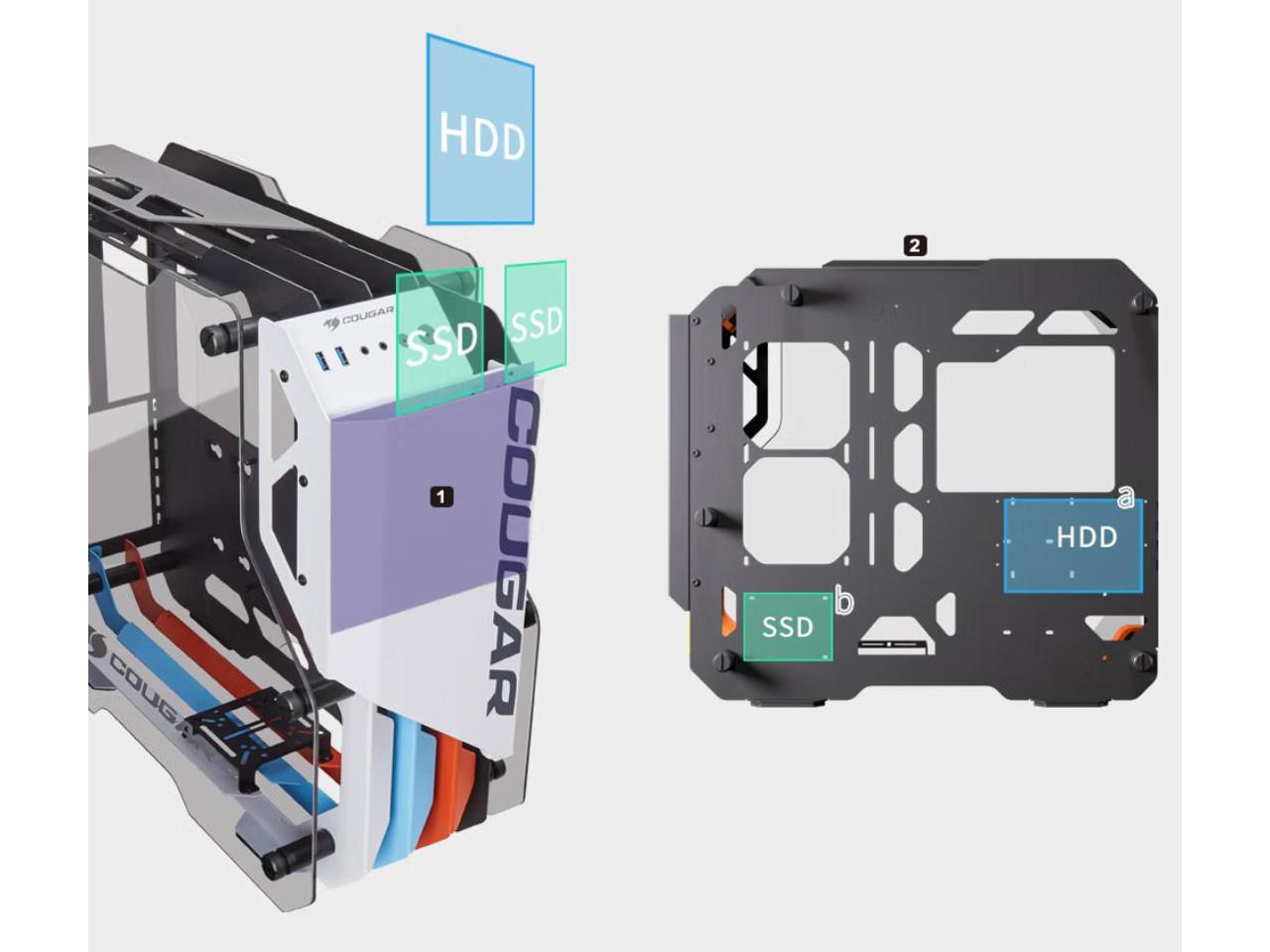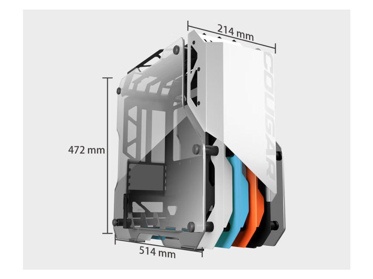 Cougar Open-Frame Computer case ATX 240mm Radiator Aluminum Alloy Glass PC Game Case - White
