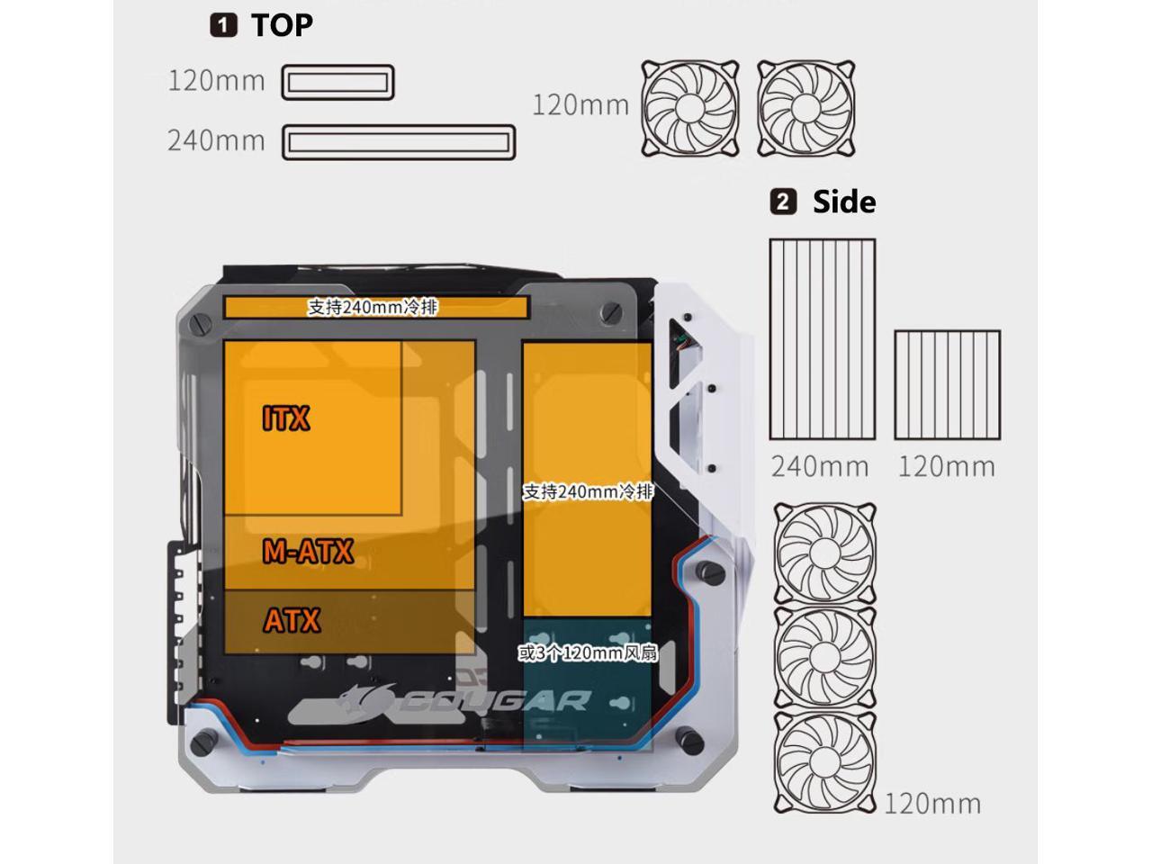 - Water Cooling Support:Top 240mm / 120mm;Right Side 240mm / 120mm