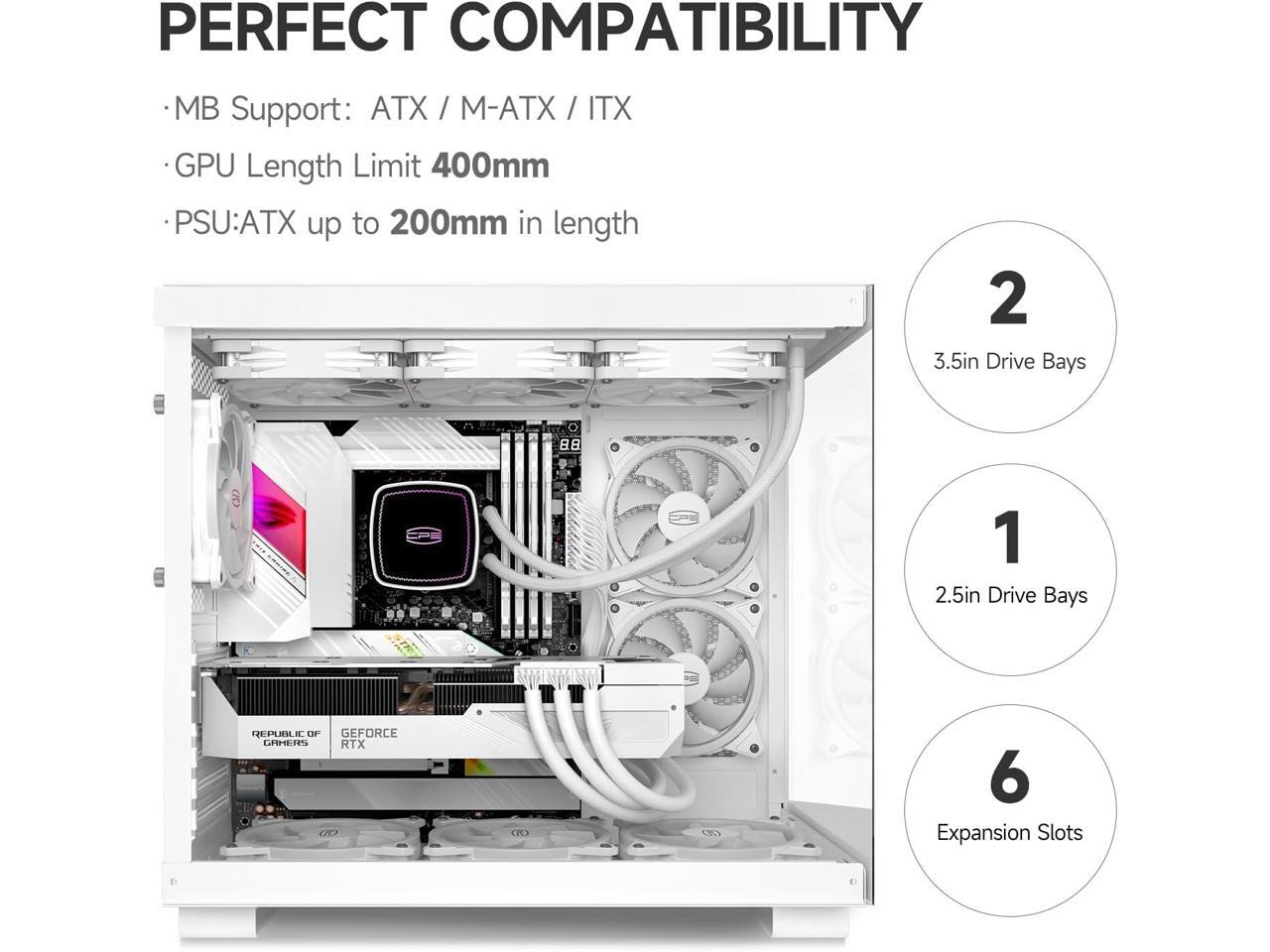 ARGB PC Case Mid Tower Desktop Computer Gaming Superior Case for ATX/M-ATX/ITX with 6 ARGB Case Fans,Column-Free Design,360MM Radiator&400MM GPU Support,Easy Installation - White