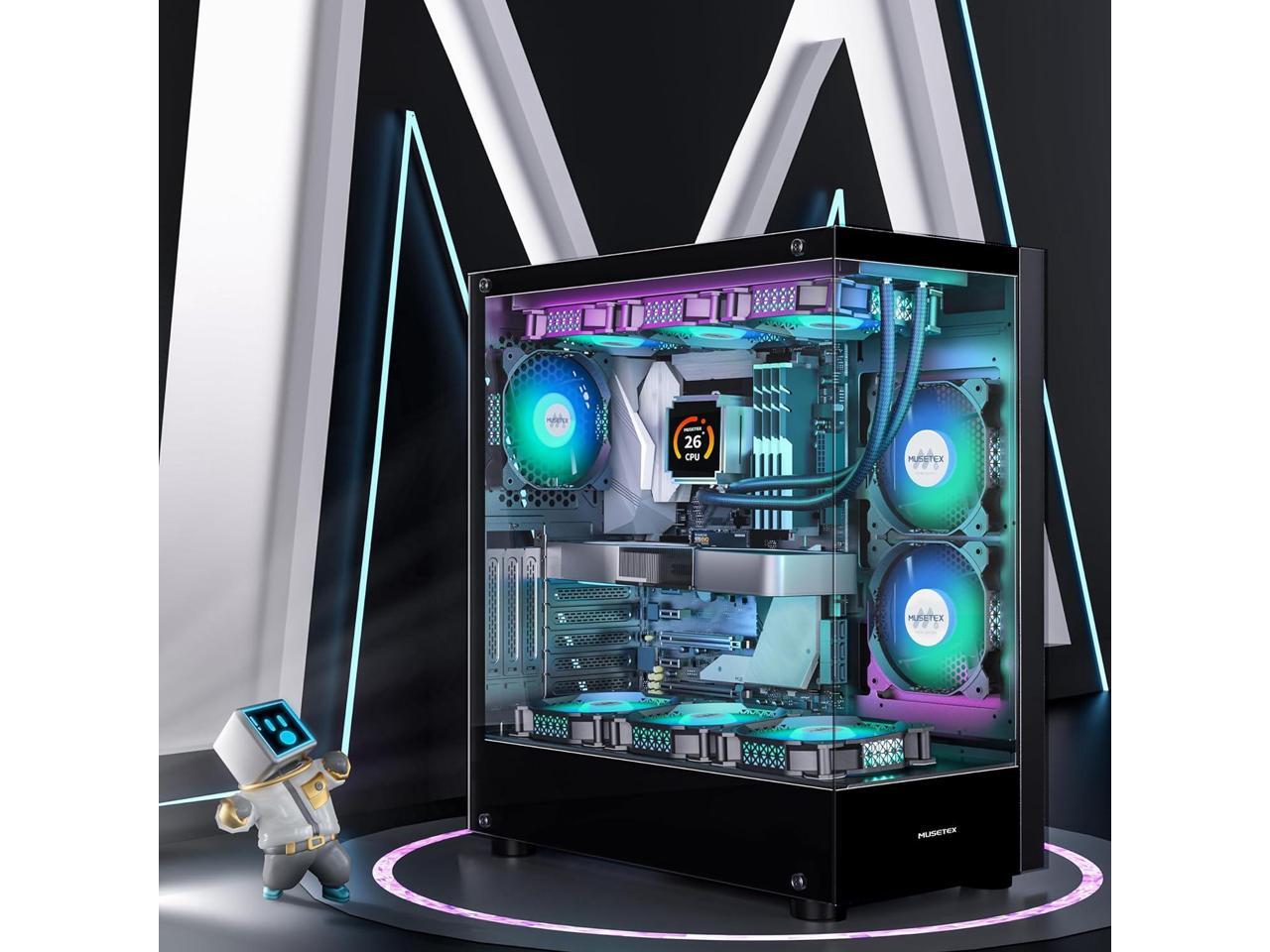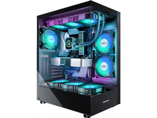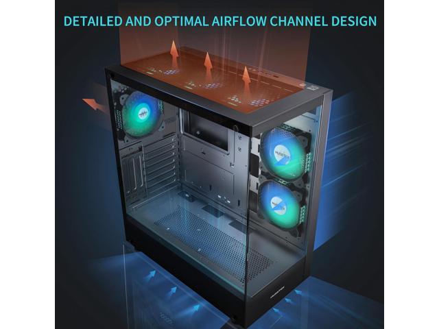 PC CASE ATX 6 PWM ARGB Fans Pre-Installed, Type-C Mid Tower Computer Case with Full View Dual Tempered Glass, Gaming PC Case,Black