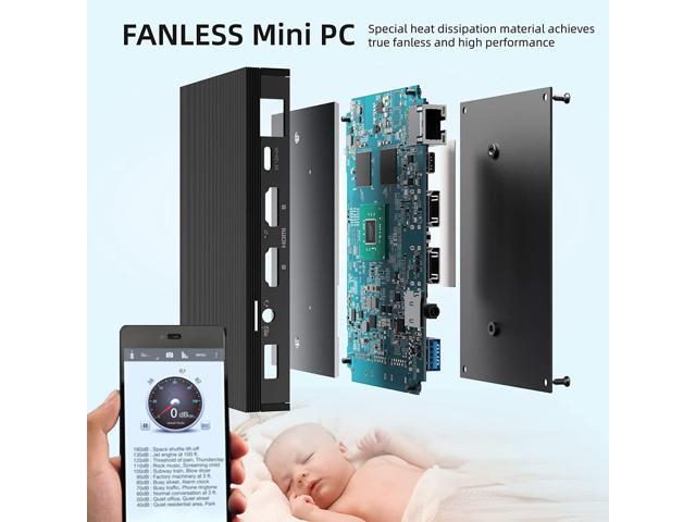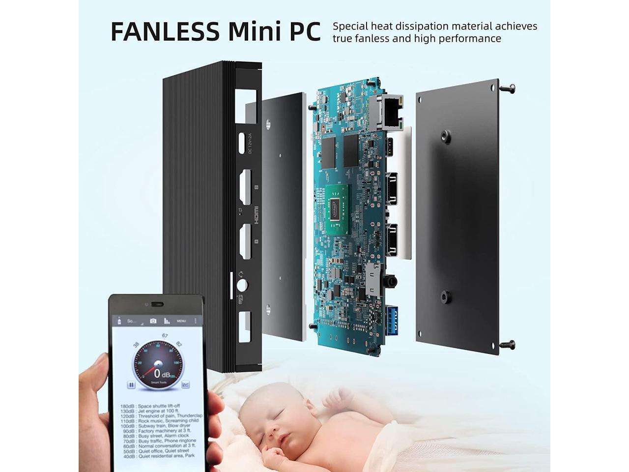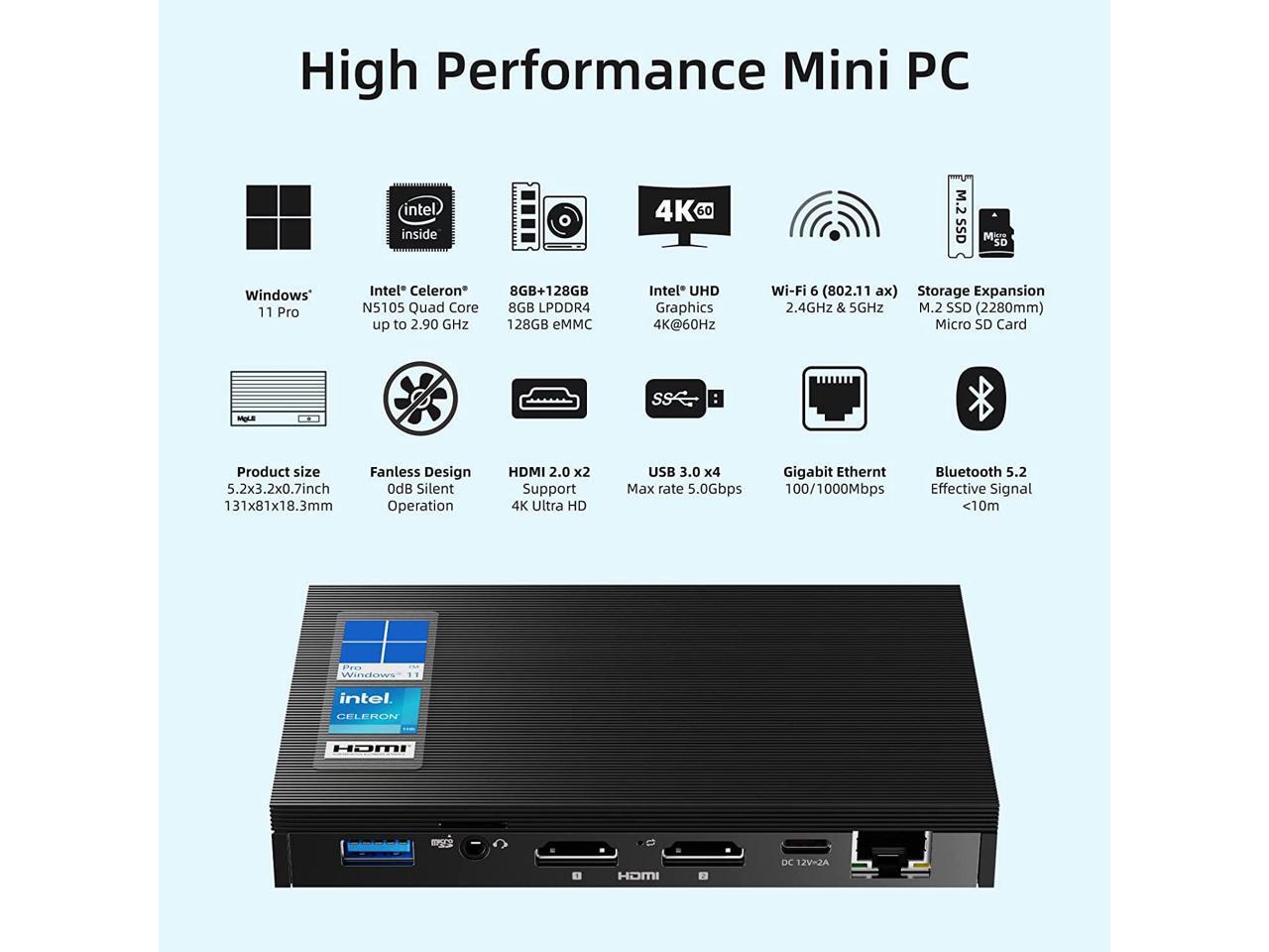 Mini PC Fanless Quieter3Q Windows 11 Pro N5105 8GB/128GB Small Desktop Computer Micro PC Support M.2 SSD up to 4TB Dual HDMI 4K HDR 2.4G/5G Wi-Fi 6, Gigabit Ethernet BT5.2 Win 10,PXE,USB3.0,VESA Mount