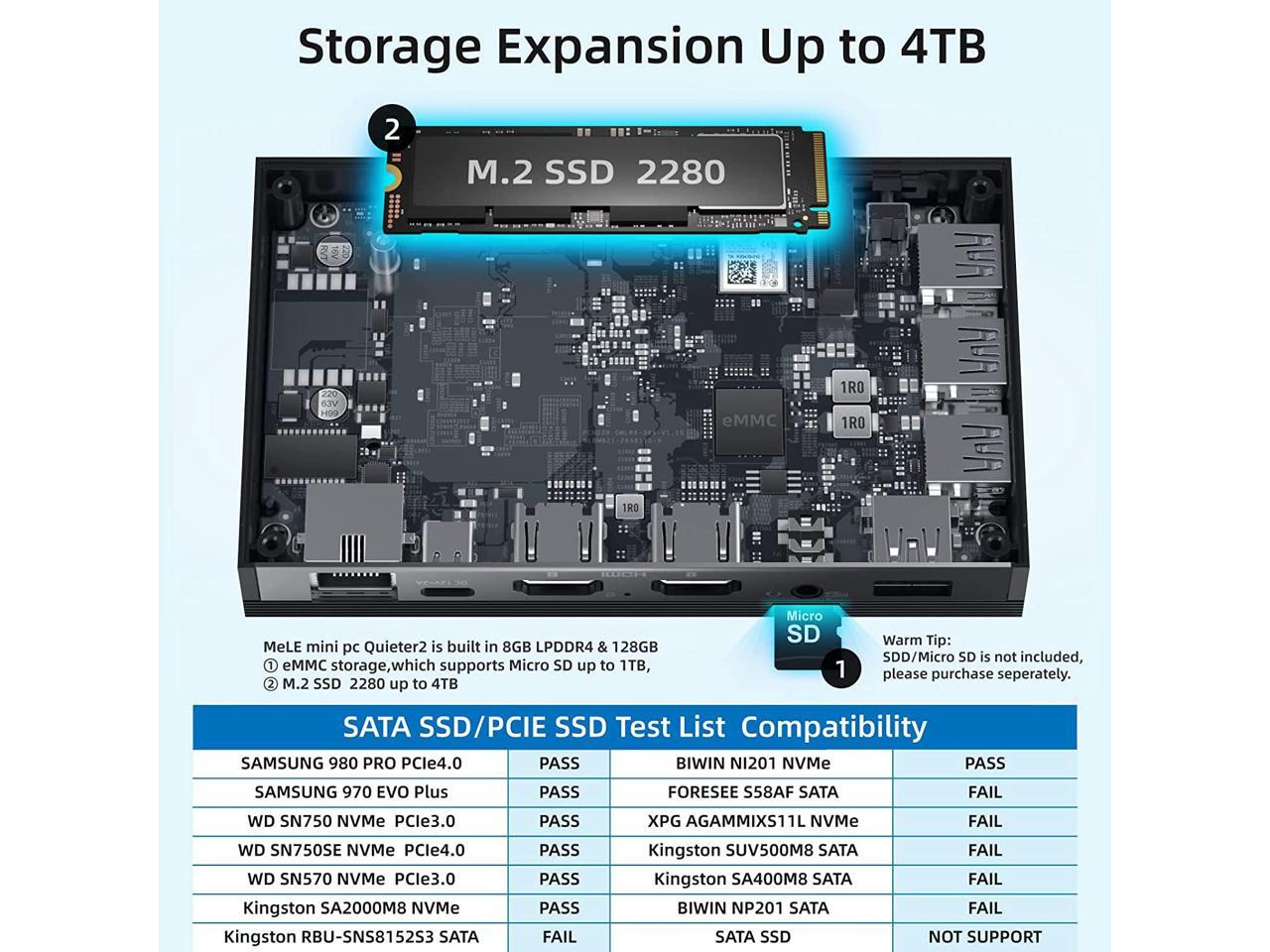 - Built in Memory 8GB,128GB eMMC Storage,it offers large expandable storage for Mirco SD card up to 2TB, support M.2 NVMe SSD (2280) up to 4TB,Support HDD/SSD up to 5TB (The Height of disk 9.5mm).