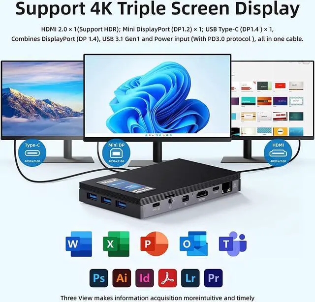 Max Resolution: 4096x2160@60Hz, the high-definition streaming function brings you a stunning movie-watching experience. The three-screen display can be easily connected to three displays to work at the same time, which is not used to switch back, reduce unnecessary operations, and retain the wonderful moments.