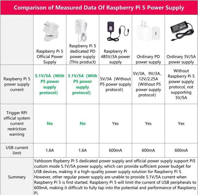 Stable power supply and high-quality cooling system are two necessary conditions to ensure the normal and healthy operation of raspberry pi 5. Yahboom's 27W USB-C 5.1V /5A power adapter solves the first necessary condition. And for the various needs of the cooling system, we provide economical heat sinks; moderate heat sinks and fans have metal casings; if long-term high-frequency operation is required, an active cooling solution that doubles the heat dissipation is needed to ensure the normal operation of the pi 5 development board.