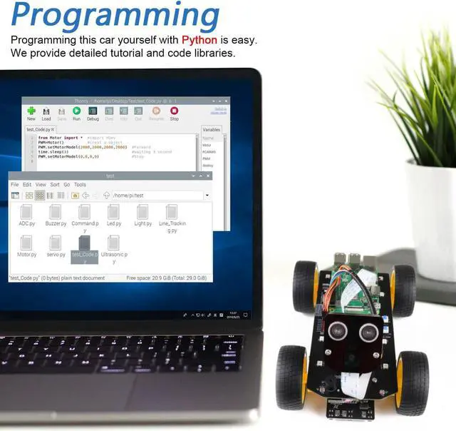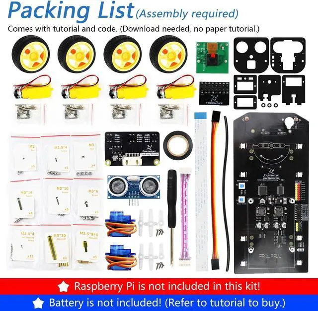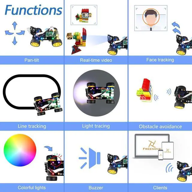 This car based on Raspberry Pi has multiple functions. (Assembly required. Raspberry Pi and Battery are NOT included.)
