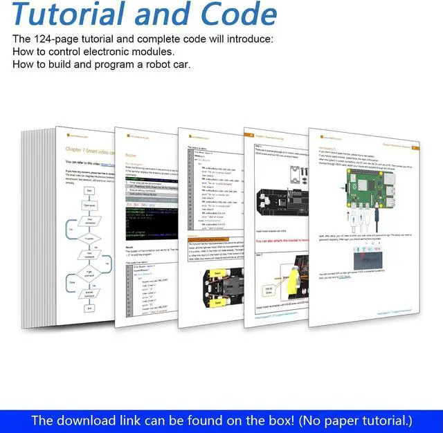 Provides detailed assembly tutorial and complete code (Python) -> The download link can be found on the product box. (No paper tutorial.)