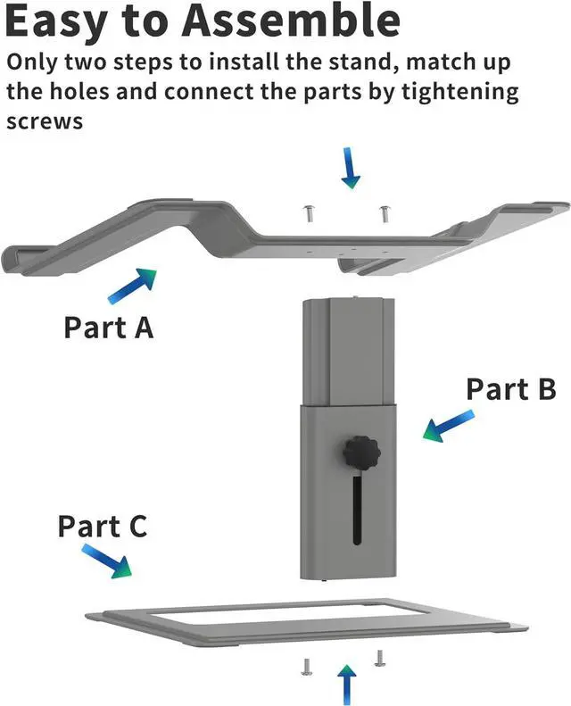 Protective and Easy Installation - The silicone pads on the surface keep your laptop stay in place and protect your device from scratches. BTW, it just need two steps that you can install the stand, match up the holes and connect the parts by tightening screws.