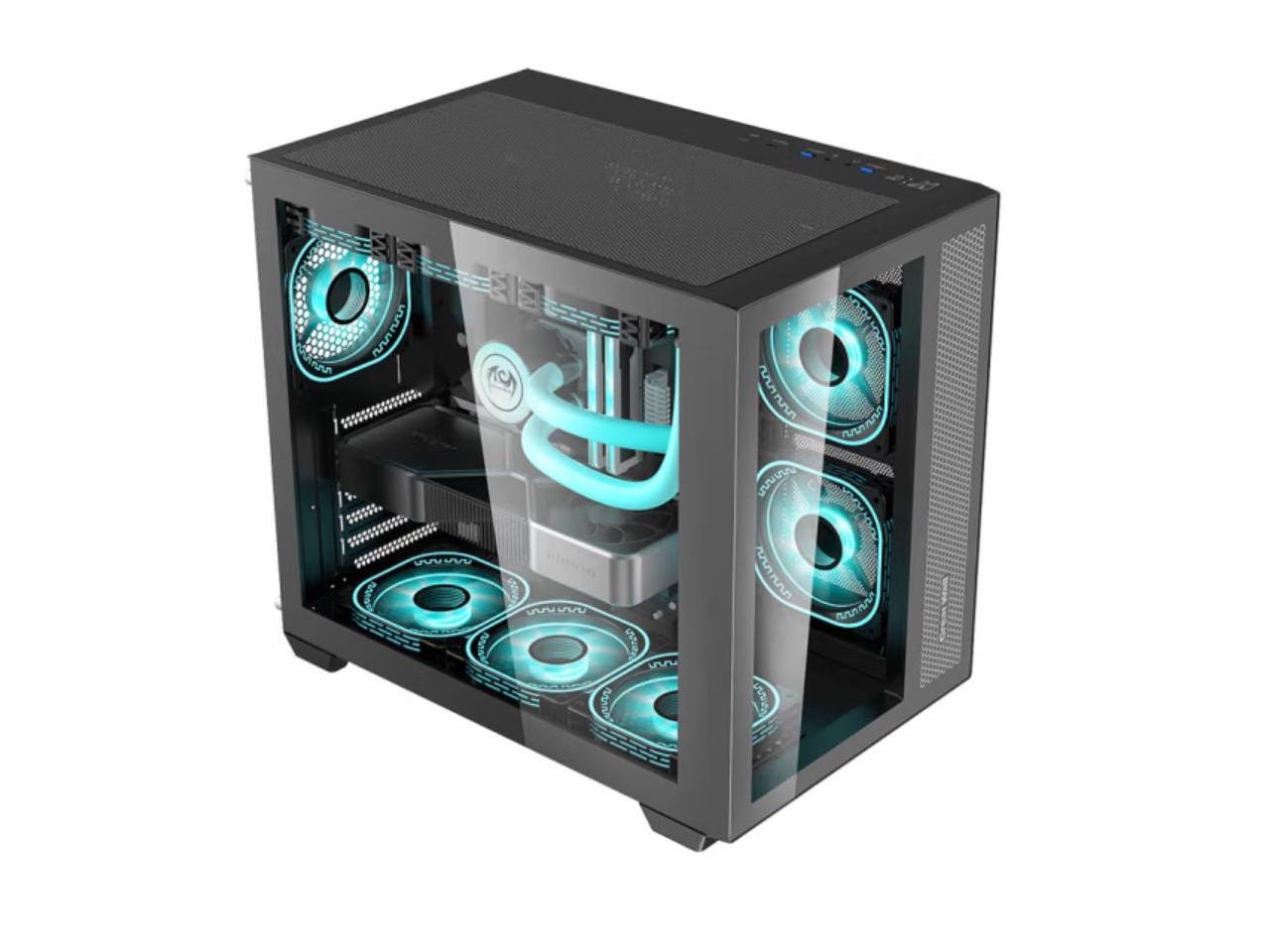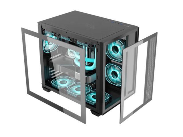 - Double-sided glass design appearance is super horizontal, bright effect can be seen at a glance.(Please put down the chassis to remove, prevent side panel from falling and touching the ceramic tile and breaking the front glass panel can also be removed)