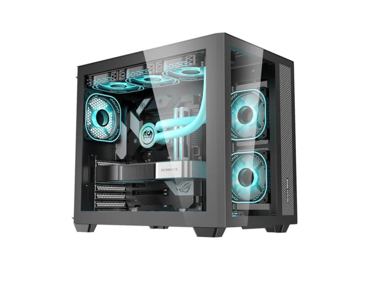 Micro ATX Case, Mini-ITX Gaming PC Case 2 Tempered Glass Panels & Front Panel Micro ATX PC Case USB 3.0 Type-C 3.2/360mm Water Cooling Ready - Black