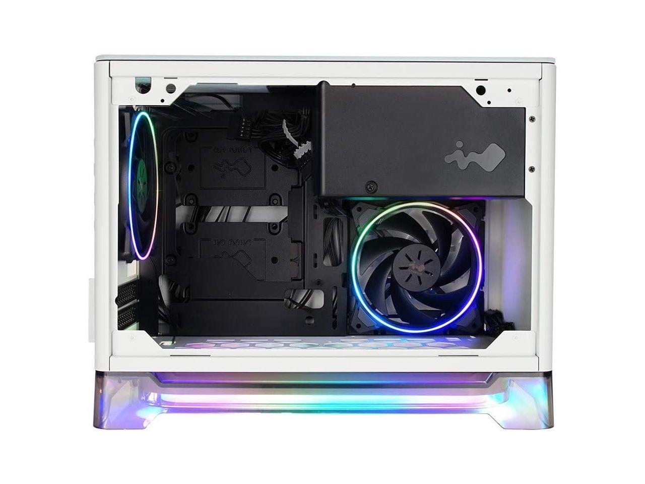 IN WIN A1 Lite White Mini-ITX Tower with Integrated ARGB Lighting with 2 complementary Sirius Loop ASL120 fans - Computer Chassis Case White