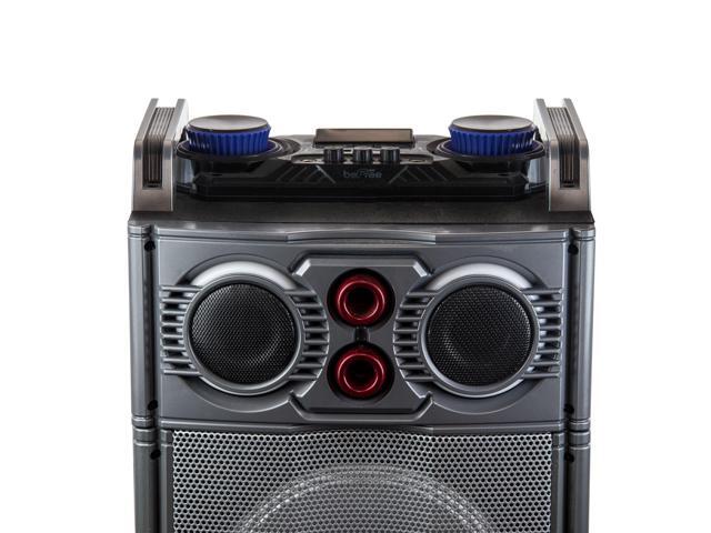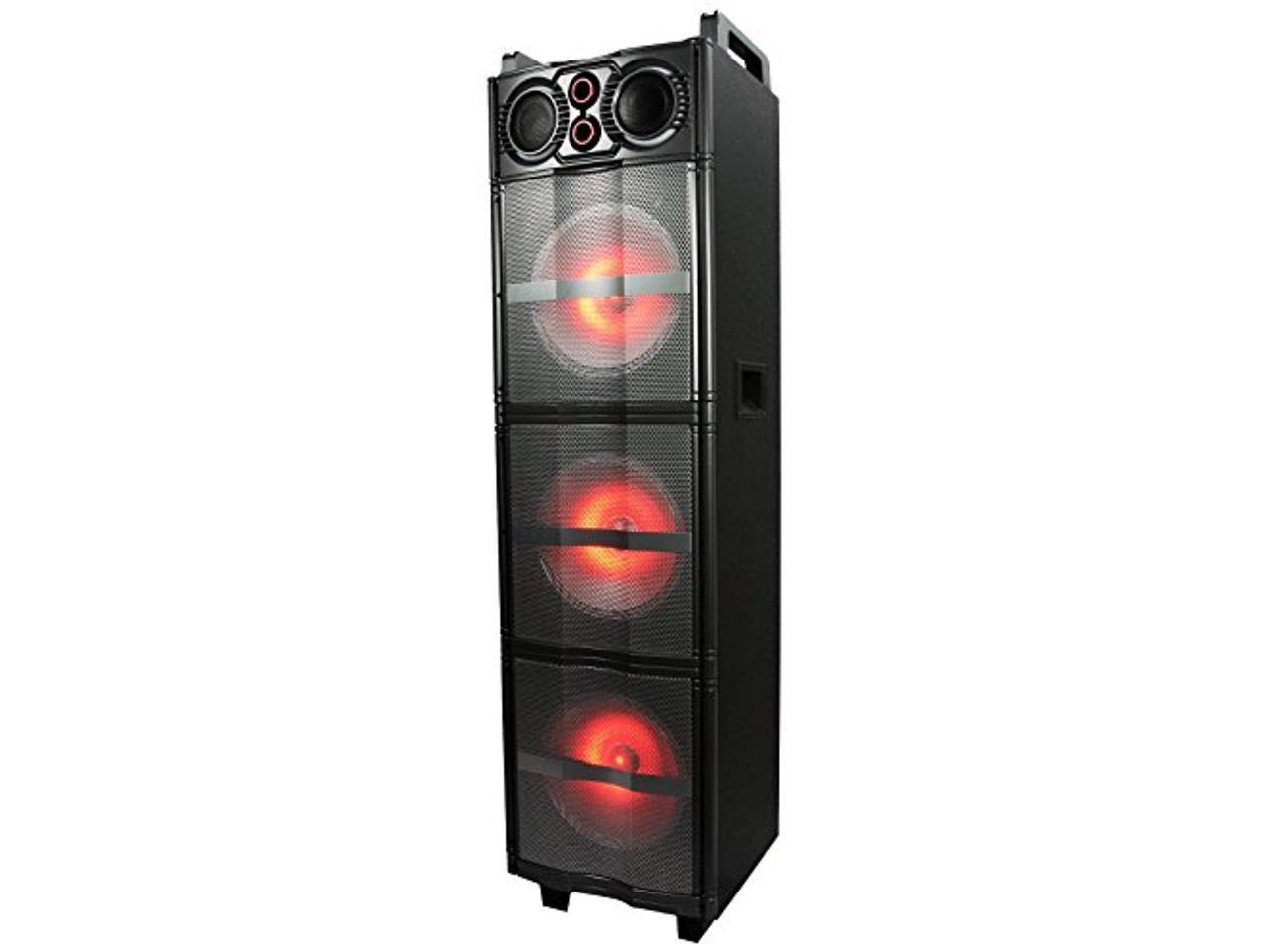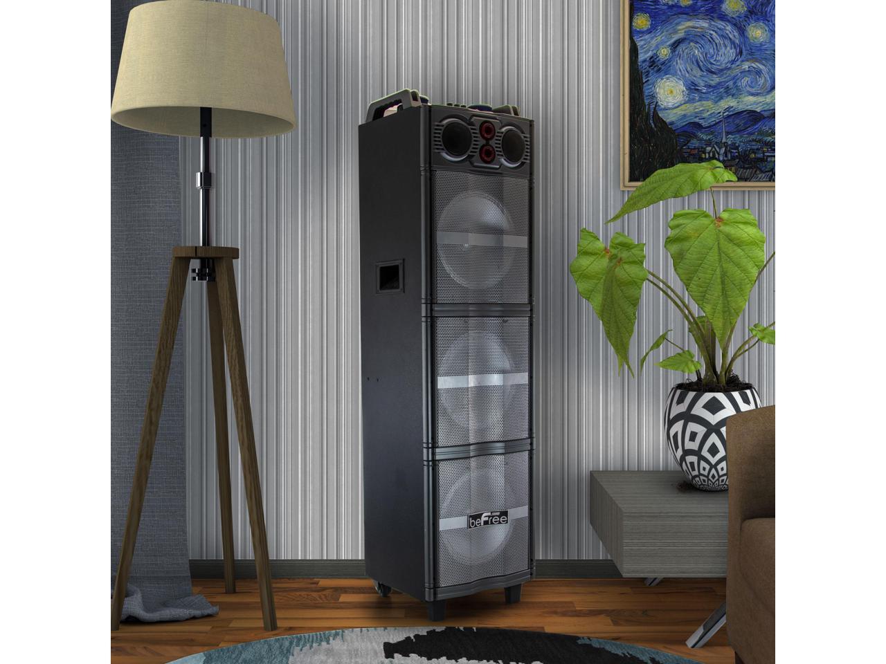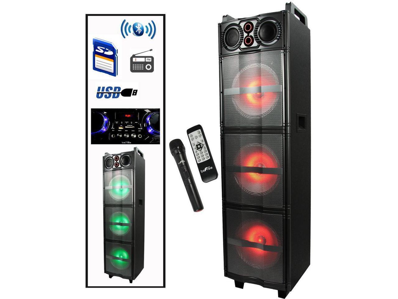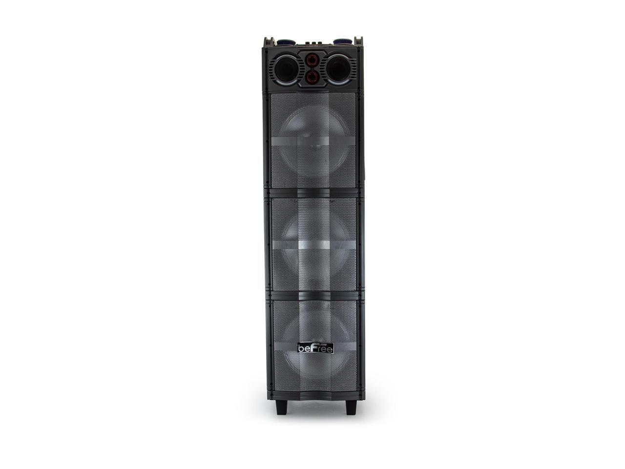 beFree Sound Party Lights Triple 10 Inch Subwoofers Bluetooth Portable Speaker with USB/ SD Input, FM Radio, Remote Control and Microphone