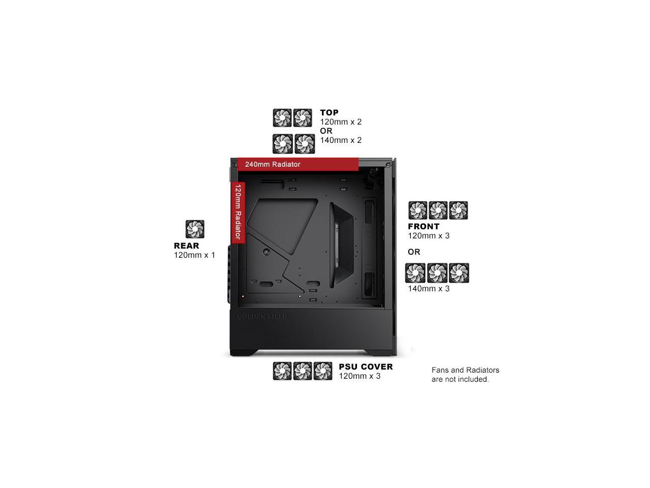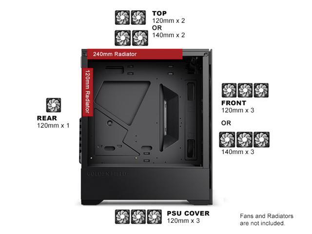 - Support WaterCooling: Front-240mm, Top-240mm, Rear-120mm