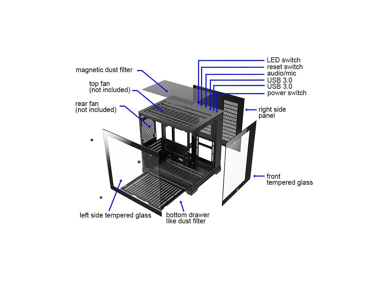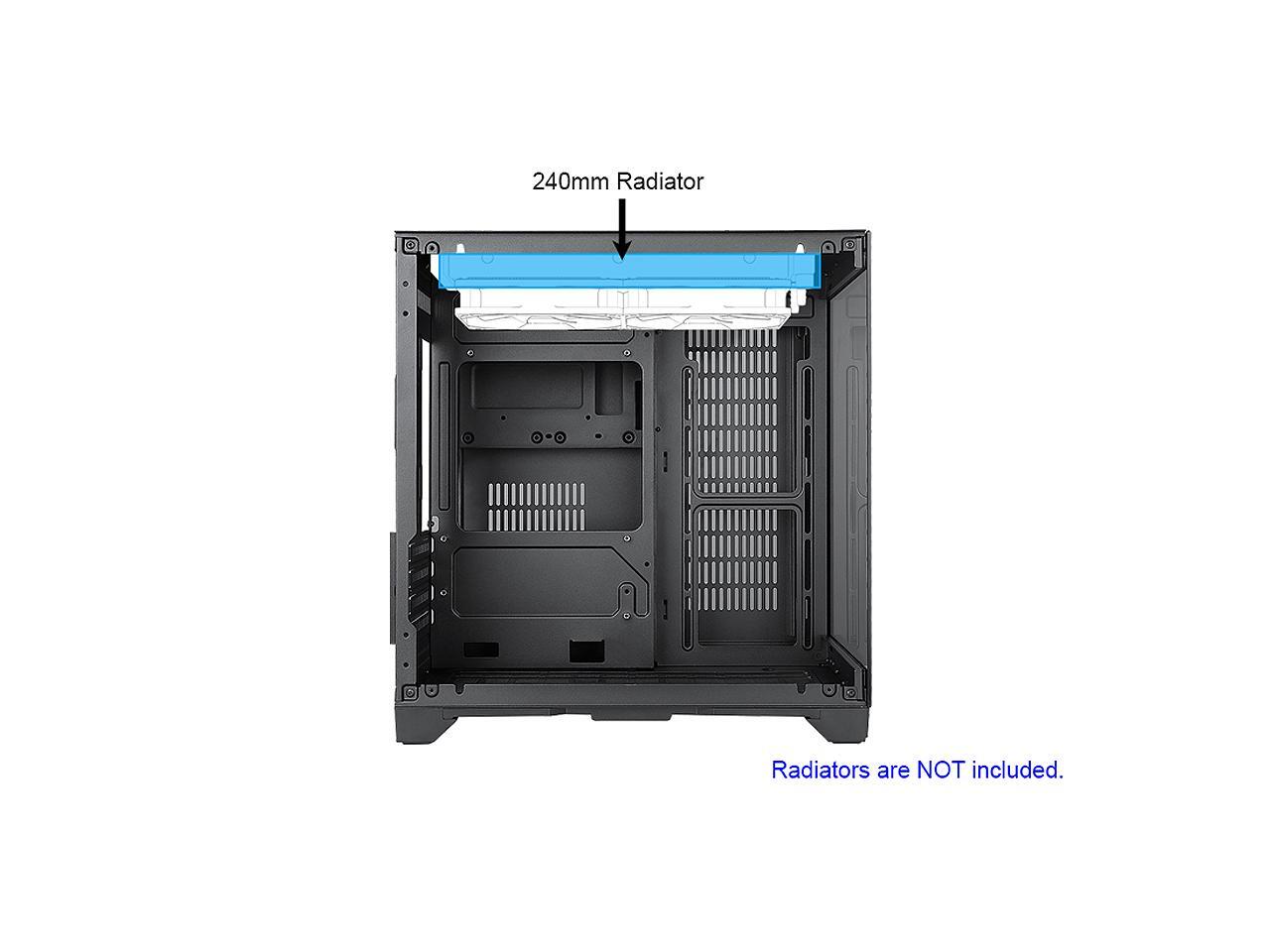 Compact Micro ATX Tower yet Spacious Interior can Accommodate GPU Length up to 330mm, Power Supply up to 160mm Depth, CPU heatsink up to 157mm tall, and Support 240mm Radiator on top panel.