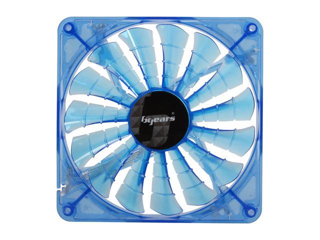 Bgears b-PWM 140 Translucent Blue with Blue LEDs, 15 Blades 2 Ball Bearing PWM fan with 500 to 1800 RPM, 110 CFM, 35.8dBA