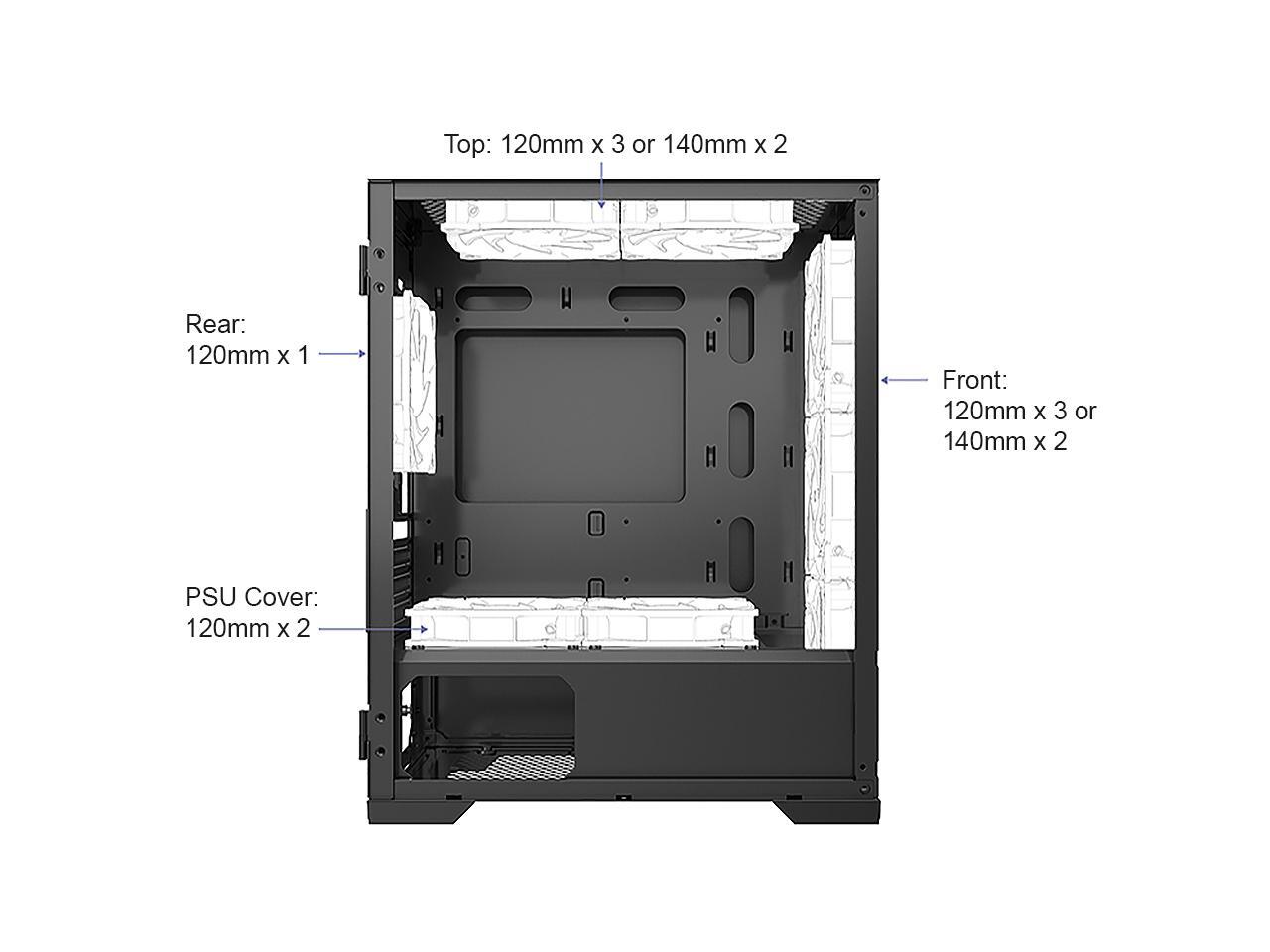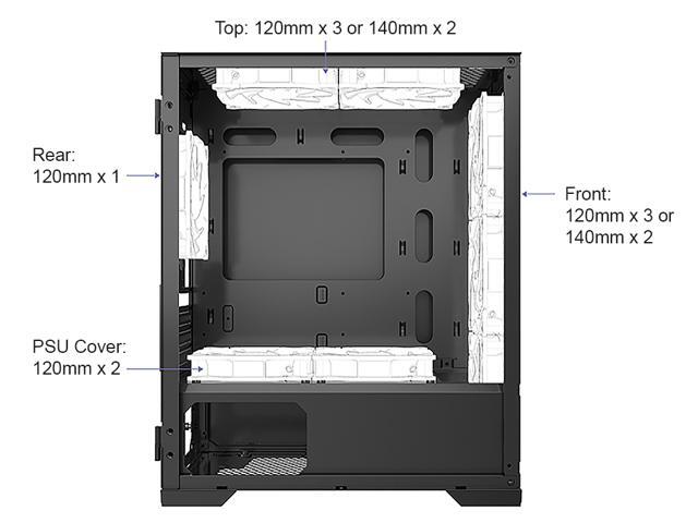 Fan Front: 120mm x 3 or 140mm x 2 (Not Included)