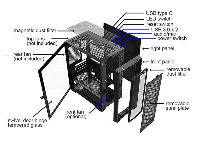 Front Panel: ABS + Steel plate + Magnet mesh, Triangular Hole design Front Steel panel