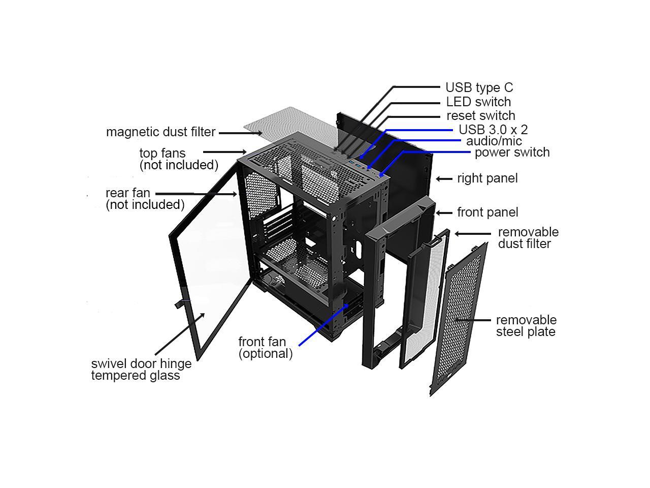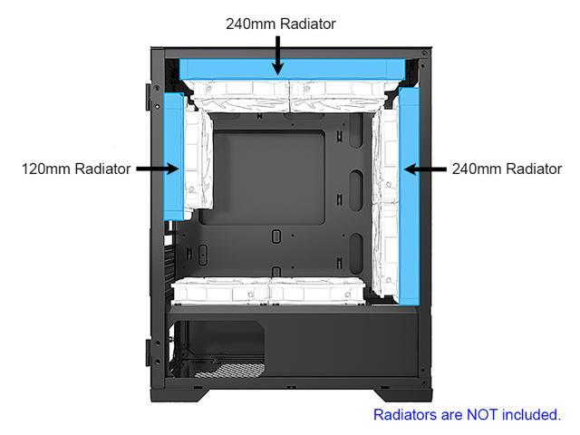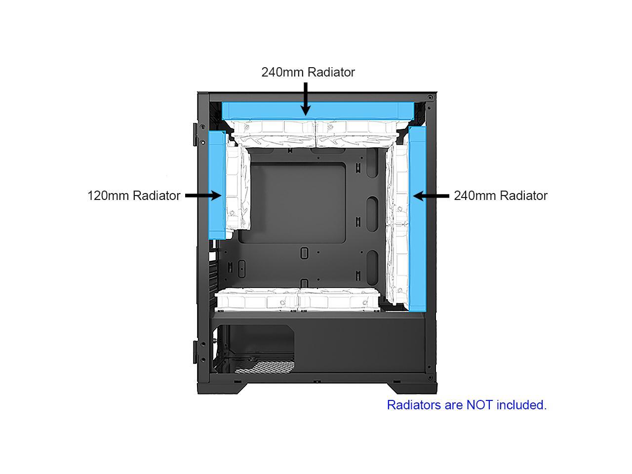 Water Cooling: Front 120/240mm, Top 120/240mm, Rear 120mm (All Not Included)