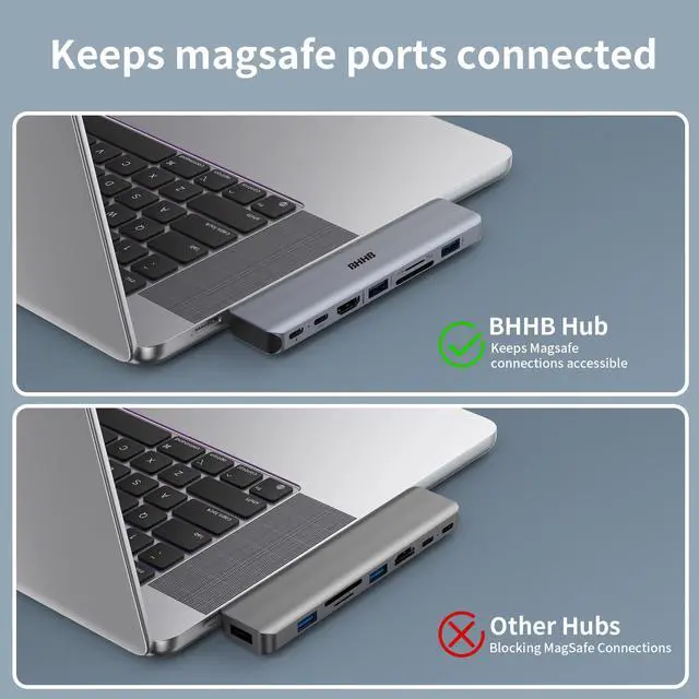 Compatible with MacBook Pro AirThis BHHB M81 MacBook adapter multiport is suitable for the latest MacBook and will not block the MagSafe port charging connection. Compatible with 13''-16'' MacBook Pro (2025-2016), MacBook Air (2025-2018), Compatible with 13'' 14'' 15'' 16'' Mac Book M5/M4/M3/M2/M1, Mac Book Pro (2025 2024 2023 2022 2020 2019 2018 2017 2016), Mac Book Air (2025-2018), Note: This accessory is not compatible with MacBooks that have a bottom case installed.