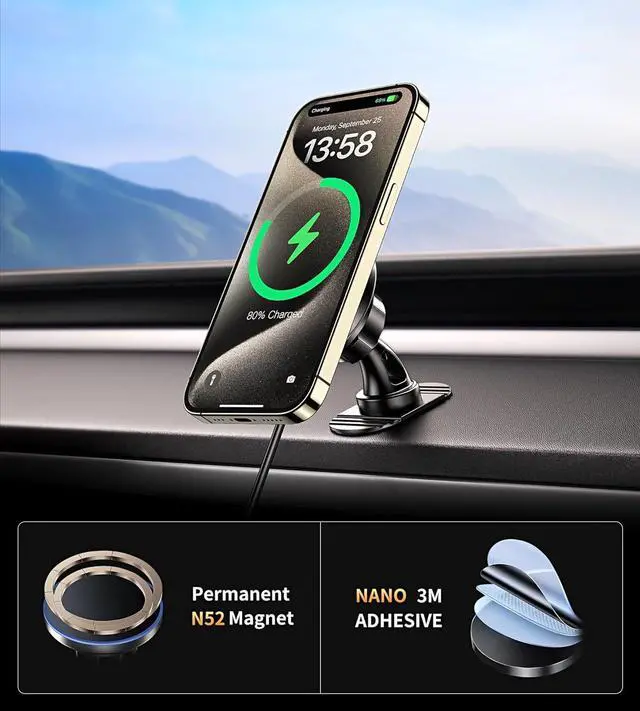 ![Alt view image 6 of 7 - for iPhone 17 Magsafe Car Mount Charger, [2026 New] 15W 2in1 Magnetic Wireless Car Charger, fits for Magsafe Car Charger, Vent/Dashboard Phone Holder Mount for iPhone 17 16 15 14 13 12 Series](https://c1.neweggimages.com/productimage/nb640/C691D2604220I8X8C54.jpg)