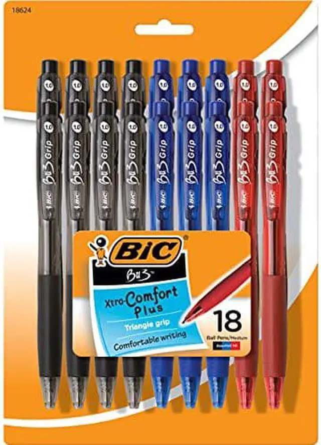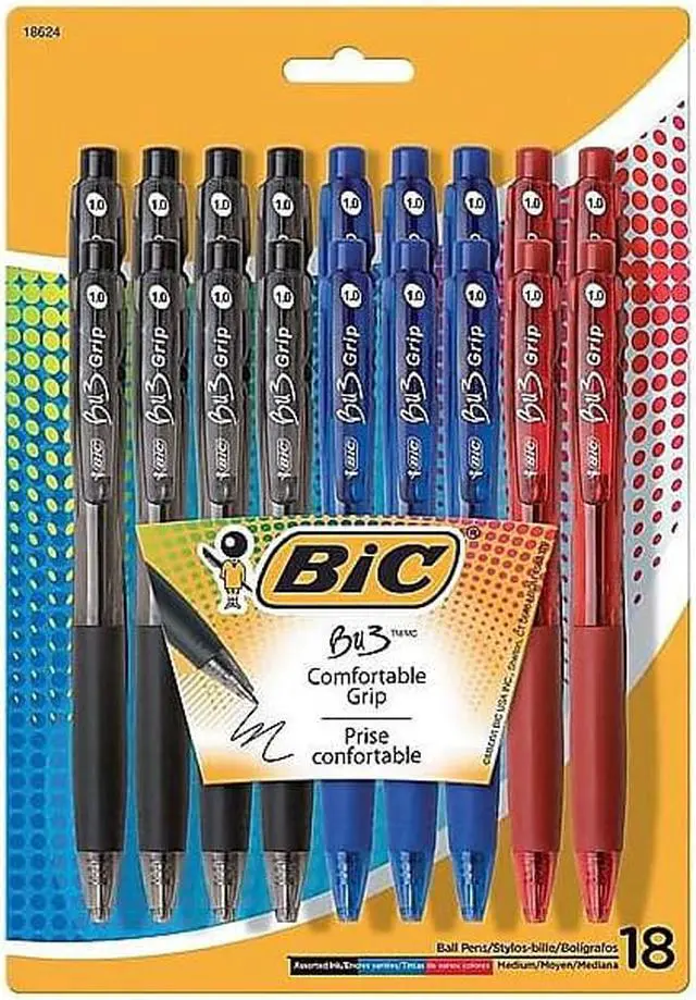 The BU3 Grip Ball Pen features side click retraction for added convenience. The specially designed grip provides comfortable writing. A sleek barrel design delivers good looks at a great value. Available in 1.0 mm medium point. Assorted colors containing black, blue, red, pink, purple, lime green and turquoise ink.