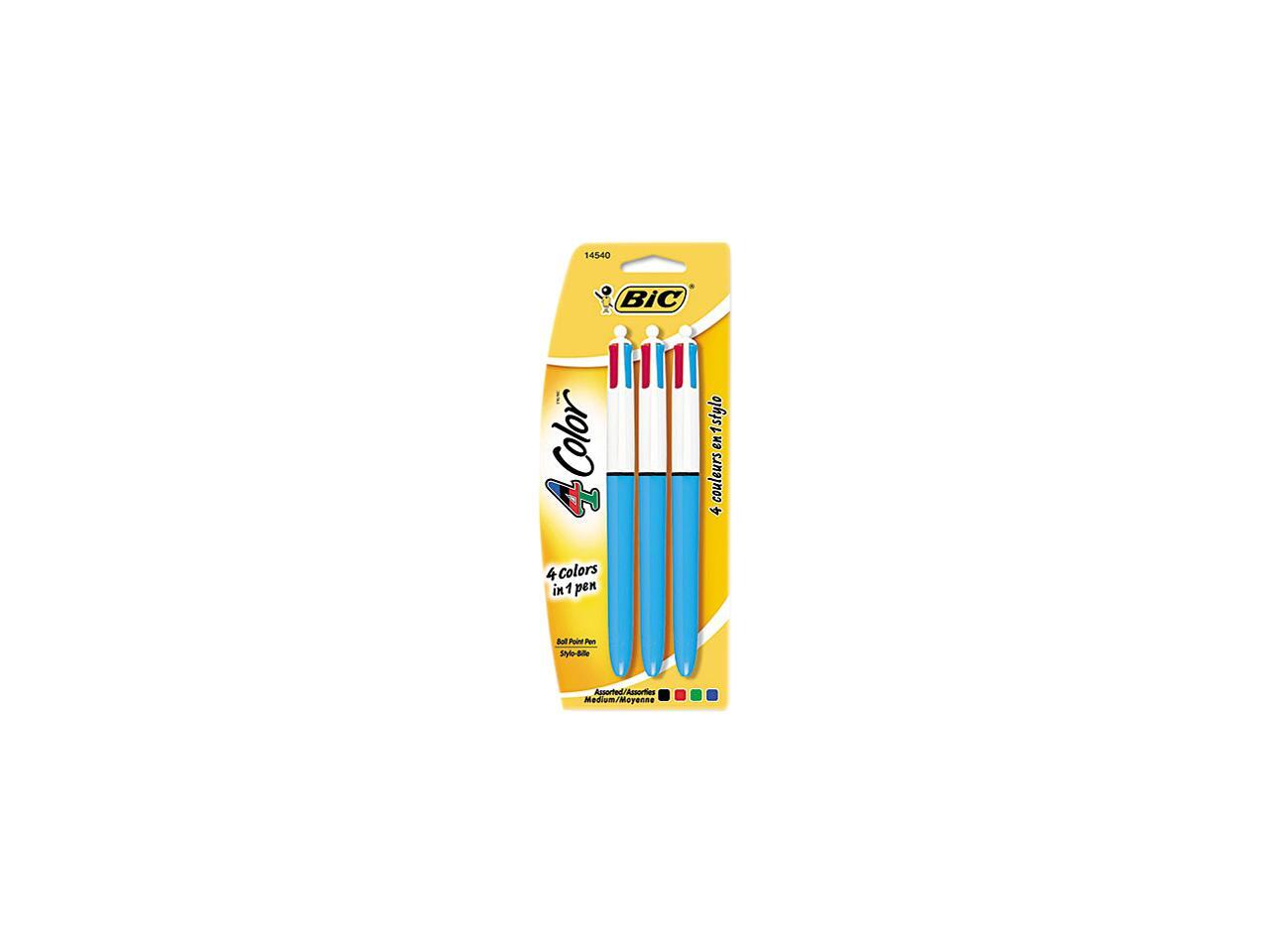 BIC MMP31 4-Color Ballpoint Retractable Pen, Assorted Ink, Medium, 3 per Pack