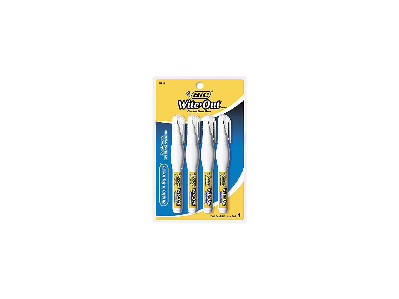 BIC WOSQPP418 Wite-Out Shake 'n Squeeze Correction Pen, 8 ml, White, 4/Pack