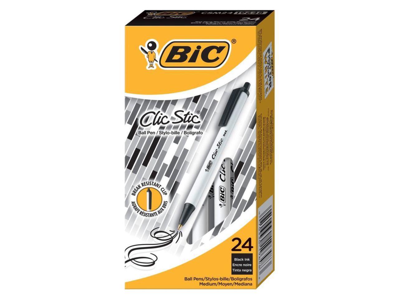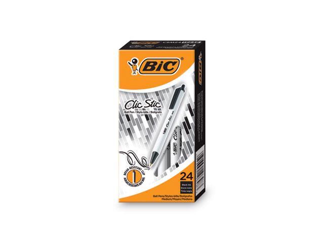 BIC Clic Stic Retractable Ballpoint Pen Black 1mm Medium 24/Pack CSM241BK