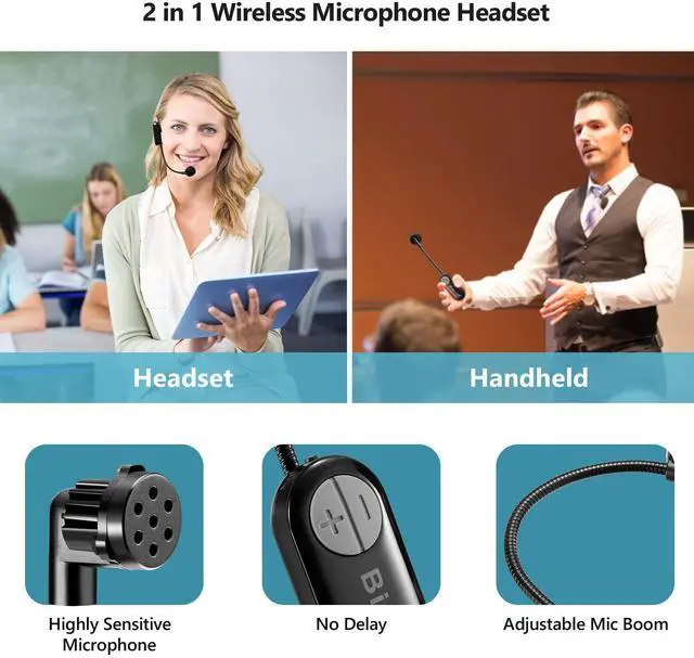 2022 UPGRADED 2 IN 1 WIRELESS MICROPHONE HEADSET