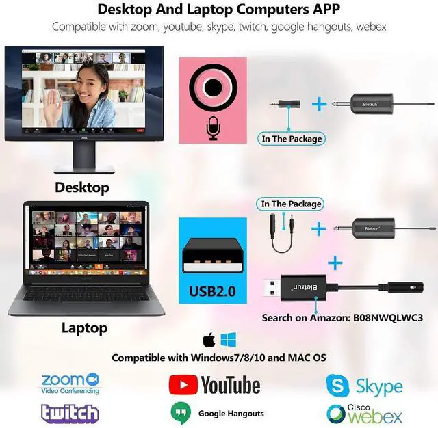 - If you need to connect to MACbook or other computers, you need Additional purchase a 6.35mm to USB converter (search on : B08SMF8M5N).