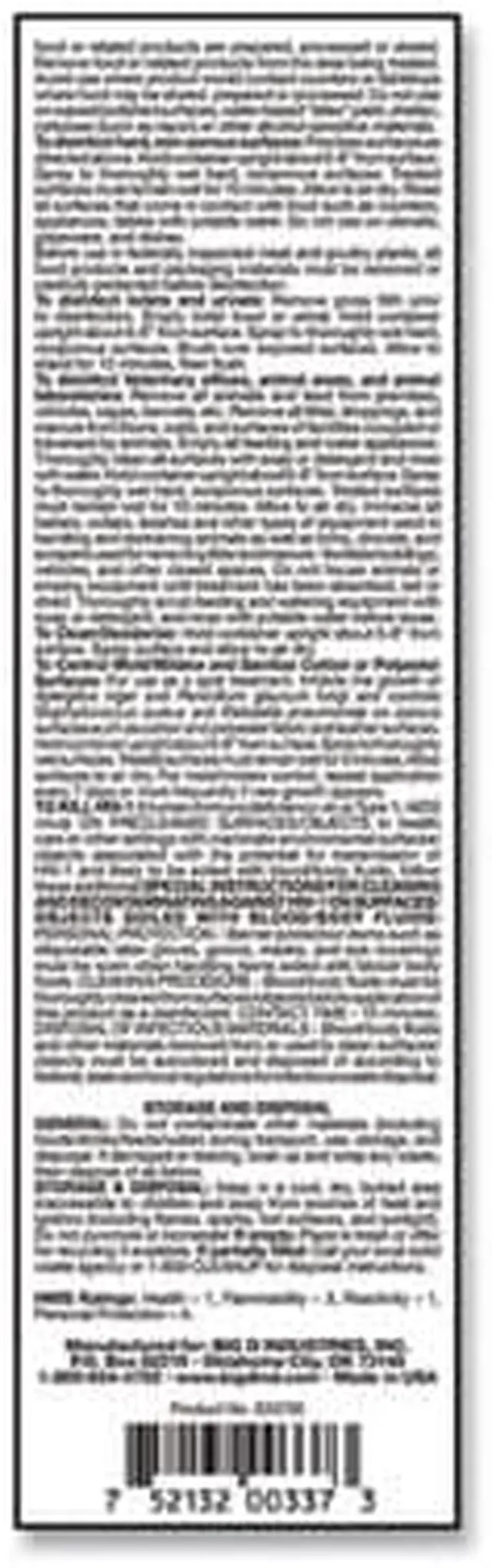 Big D PHENO D+ is an EPA-registered, hospital-grade antimicrobial agent and two-way deodorizer for use on pre-cleaned hard, nonporous surfaces including toilets, urinals, bathtubs, shower stalls, seats, benches, lockers, partitions, counters, fixtures, knobs, handles, railings, telephones, furniture, equipment and other surfaces which could harbor hazardous microorganisms. PHENO D+ kills harmful viruses, bacteria, fungi, mold and mildew, while sanitizing and deodorizing. Application: Disinfectant/Deodorizer; Applicable Material: Hard, Nonporous Surfaces; Chemical Compound: 2-Phenylphenol; Ethanol; Dirt Types: Bacteria; Fungus; Mildew; Mold; P. Aeruginosa; S. Aureus; Viruses.