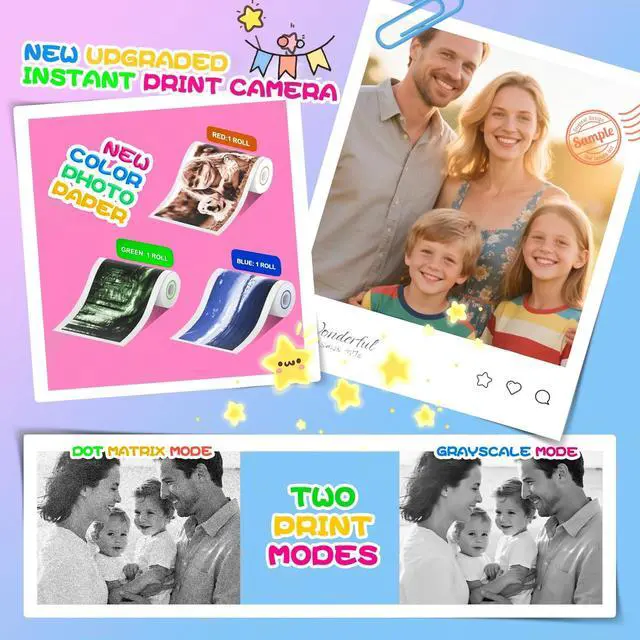| Free 3 rolls of photo paper | 6 rolls printer paper package | 12 rolls printer paper package | Free 3 rolls of photo paper | Free 3 rolls of photo paper | No Photo Paper Required | No Photo Paper Required |