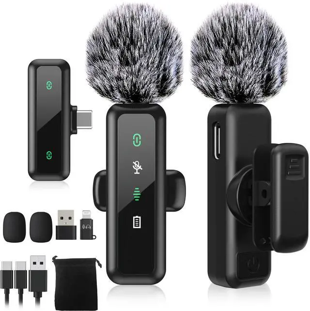 Included Components Microphone x 2, USB-C Receiver x 1, USB C to Lightning adapter x 1, 2 IN 1 Type C Charging Cable x 1, User Manual x 1, Wind Muff x 2, Standard Windproof Covers x 2