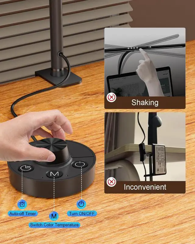 This LED desk lamp is the ultimate solution for a well-lit and productive workspace. It features stepless dimming and customizable color temperatures (2600K-6500K) with convenient memory and timer functions, ensuring optimal lighting for work, study, or creative tasks. Designed with asymmetrical optical lighting, it minimizes glare, flicker, and blue light hazards, providing eye-caring light for extended use. Its 360° adjustable gooseneck and 47-inch extra-wide arm make it perfect for large or multi-screen monitors, while the sturdy metal clamp ensures compatibility with various desk styles. Built for durability, it incorporates energy-efficient LED chips and premium materials for a lifespan of up to 50,000 hours. With its sleek design and built-in wire management, this lamp is ideal for home offices, living rooms, or bedrooms, offering both functionality and elegance.