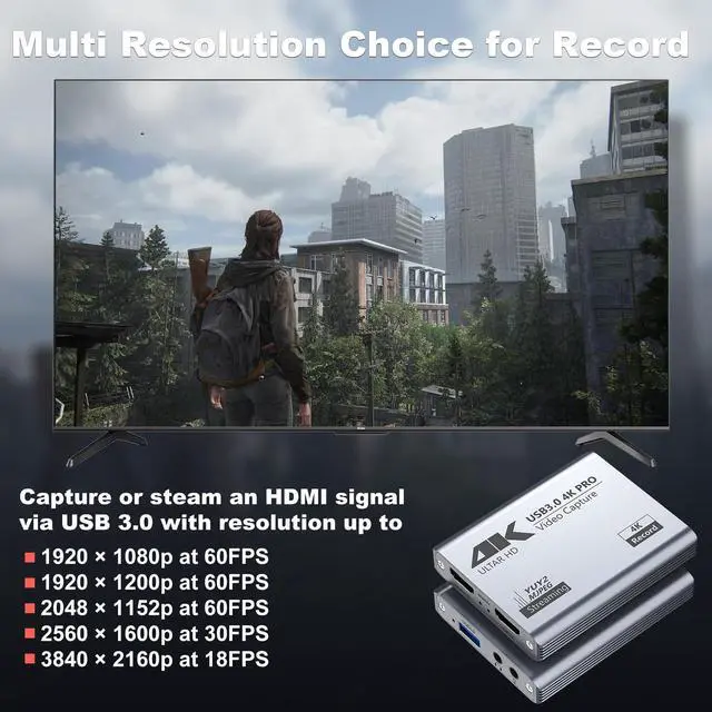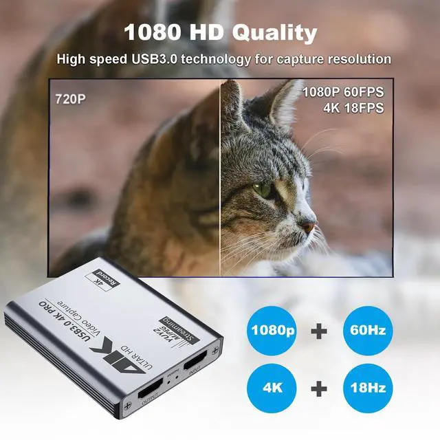 | USB3.0 Output Resolutions | 720×480 (60p), 720×576(50p), 1280×720p (50p) 1280×720p(60p), 1920×1080 (50i), 1920xx 1080(60i), 1920×1080 (24p), 1920×1080(25p), 1920×1080(30p), 1920×1080(50p), 1920×1080(60p), 1920×1200(60p), 2048×1152(60p), 2560×1600(30P), 3840×2160(18p) |