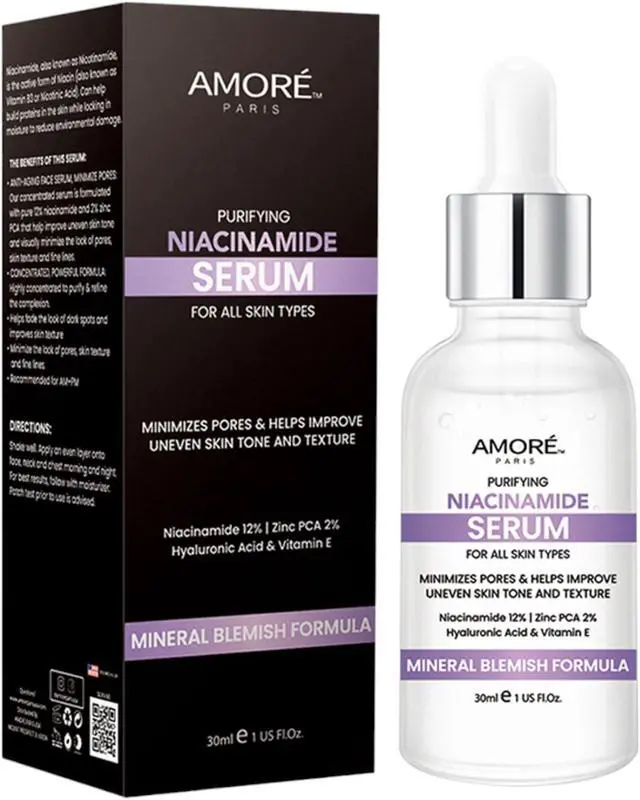 Revitalize your skin with our Niacinamide Face Serum, a potent blend designed to transform your complexion. Infused with 10% niacinamide, this serum effectively minimizes the appearance of pores, fine lines, and uneven skin tone. Its lightweight, fast-absorbing formula works to balance oil production, reduce redness, and improve overall skin texture. Suitable for all skin types, this serum also includes hydrating and soothing ingredients to enhance your skin's natural radiance. Incorporate our Niacinamide Face Serum into your daily skincare routine for a smoother, clearer, and more youthful-looking complexion.