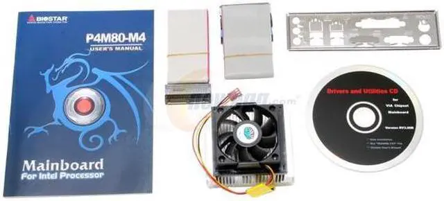 | Package Contents | P4M80-M4-COMBO35 User Manual Driver Disk Rear I/O Panel Shield IDE/PATA Cable FDD Cable CPU Heatsink & Fan |