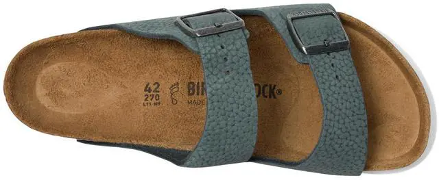 DescriptionThe legendary two-strap design from BIRKENSTOCK - the Arizona. Iconic style with the signature comfort of the BIRKENSTOCK footbed. This version with its grained upper boasts a striking yet natural design. The upper is made from high-quality, soft nubuck leather with a tumbled appearance.