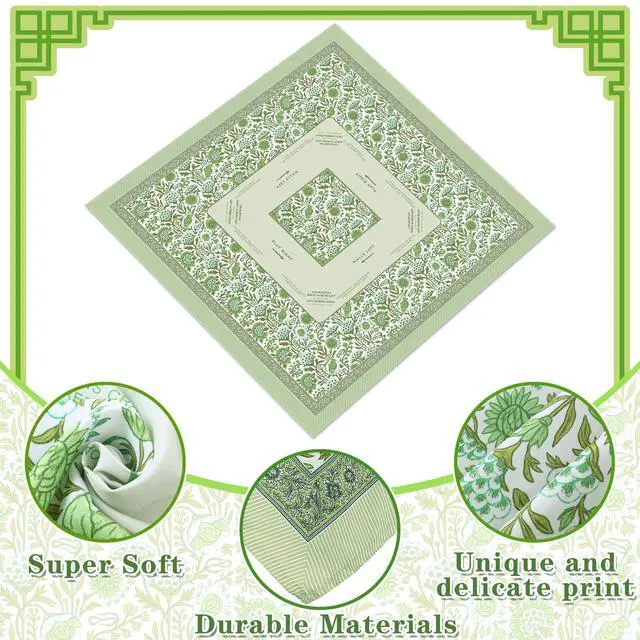 Durable Polyester Fabric: this Indian Block Print tablecloth is made of durable yet lightweight polyester; It resists scratches, spills, and daily wear, preserving its green floral pattern; Machine washable and fade-resistant, it offers easy care and a long lifespan