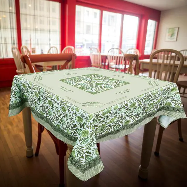 Mahjong Tablecloth 55" x 55" Polyester Indian Block Print Green Floral Flower Square Instructional Design with Rules for Game Night Party Favor Supplies